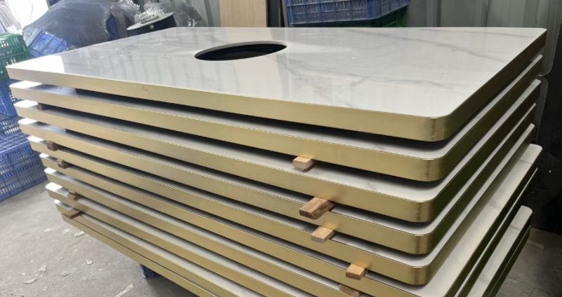 提升美观度:岩板的边缘经过铝材包边后,能呈现出更加精致、流畅的线条,为岩板增添现代感和时尚感。不同颜色和表面处理的铝材,如哑光、亮光、拉丝等,可以与岩板的颜色和纹理相搭配,满足不同的设计风格需求,使岩板在空间中更具视觉吸引力。