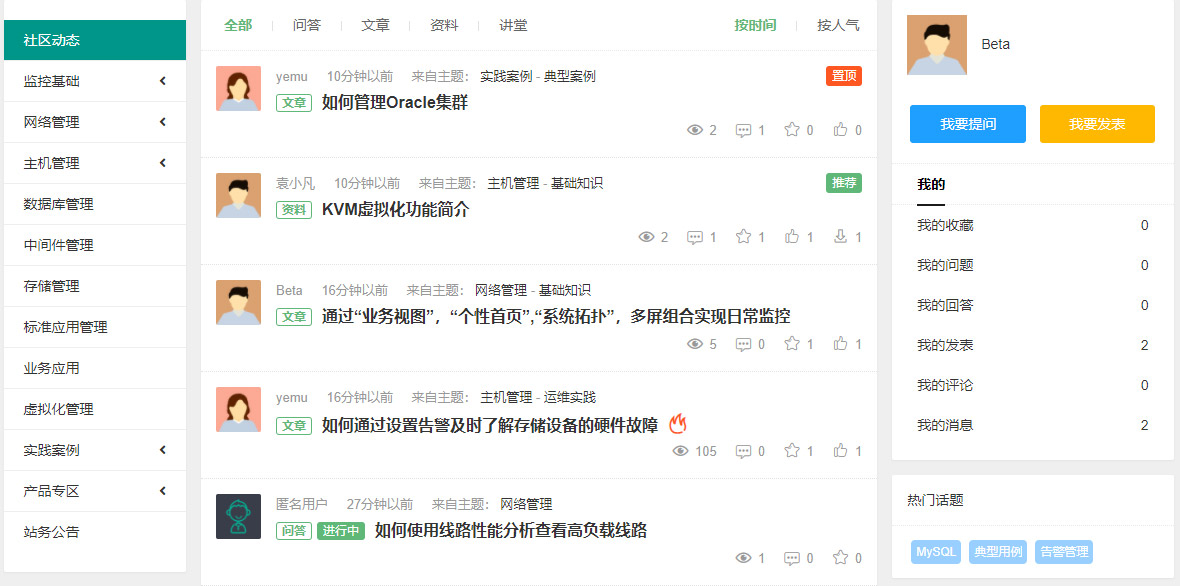 - 提供持续的运维实践知识收集与分享,面向北塔全国的技术团队以及各行业专家用户,持续收集运维实践用例、技巧经验,进行全网用户分享。提供在线问答、在线培训、经验分享、积分求助、用例推荐等知识分享与互助社区服务